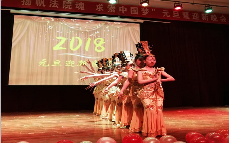 12月12日晚,bevictor韦德国际在老员工活动中心成功举办了以“扬帆法院魂,求索中国梦”为主题的2018年元旦暨迎新晚会。bevictor韦德国际党委副书记郑建村、副经理胡海涛出席,bevictor韦德国际全体辅导员和500余名同学共同观看了晚会。