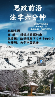 在细微中看世界,在分享中品人生。本期思政前沿法学六分钟聚焦三个话题,分享生活和学习上的点点滴滴