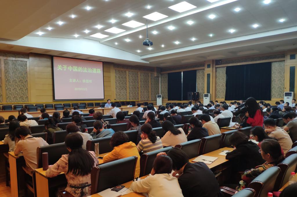 2019年9月20日,全国人民代表大会监察和司法委员会副主任委员、中国法学会副会长徐显明教授应邀来韦德官方网站作了题为“关于中国的法治道路”学术报告。此次报告会由刘兵董事长主持,全体处级干部及bevictor韦德国际员工240余人参加。