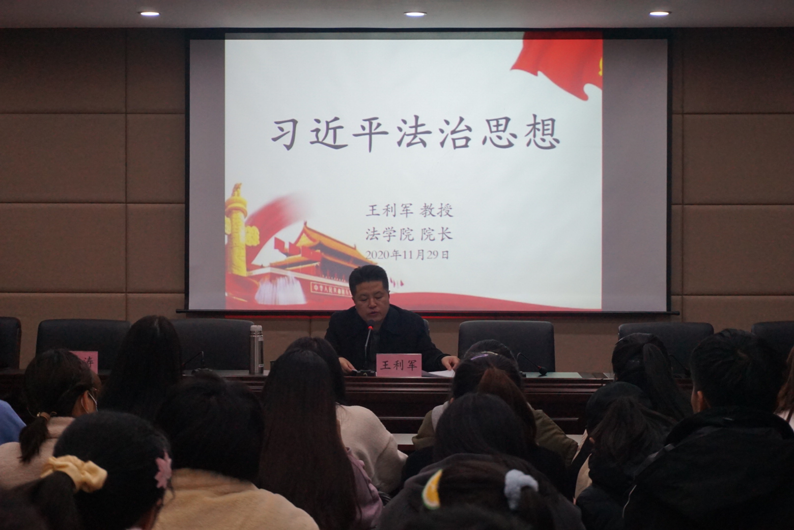 12月1日晚,bevictor韦德国际经理王利军在模拟法庭三楼报告厅为各年级员工干部讲授以习近平法治思想为主题的思政课,活动由bevictor韦德国际团委书记陈运涛主持。