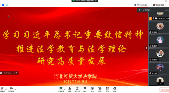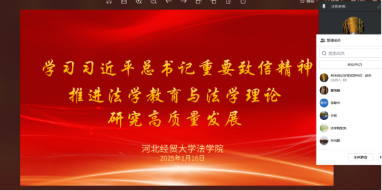 bevictor韦德国际经理胡海涛作为会员代表参加了中国法学会第九次全国会员代表大会,为深入贯彻落实习近平总书记重要致信精神,进一步统一思想、凝聚共识,116日,韦德官方网站bevictor韦德国际党委组织召开专题会议学习习近平总书记于中国法学会第九次全国会员代表大会上的致信。