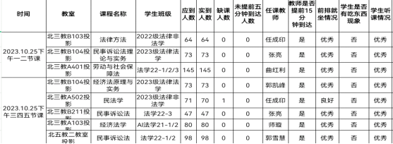 教学运行总体情况良好。检查组安排16名工作人员分别到各个教室,对10月25日下午的上课情况进行了全面检查,共检查8个教学班。教师们教学思路清晰,促进员工主动学习,利用多媒体辅助教学。员工们听课状态优秀,能够主动提出自己的问题与老师进行沟通交流,前排就坐率良好。