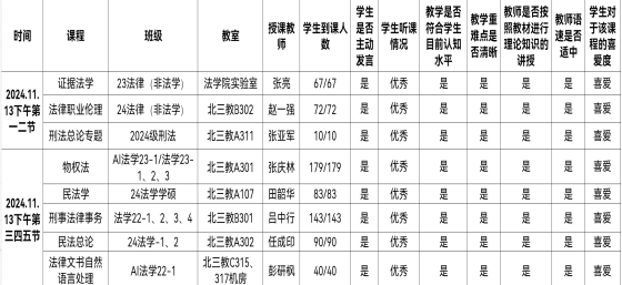 此次检查从员工的出勤表现、教学内容编排的妥当性、课堂教学的有序性等多个层面入手开展相应事务。检查组共检查8个教学班,各任课教师多会通过PPT辅助教学工作,教学过程中重点突出显著,逻辑条理分明,员工参与课堂的积极性颇高,教师的讲话语调亲和,语速适中合宜,还能持续地调动员工的积极性,充分肯定了员工的主体地位。