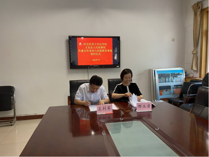 为进一步促进法学理论与司法实践紧密结合,推动法治教育和实践教学工作共上新台阶,7月4日下午,韦德官方网站bevictor韦德国际与廊坊市文安县人民检察院达成了以“交流互鉴,优势互补,资源共享,互利共赢”为目标的战略合作协议,并举行了“检校合作签约暨揭牌仪式”。与文安县人民检察院的签约合作,是bevictor韦德国际着力推进团队交流、员工培养、实习实践等多方面与司法部门深度合作的创新举措。bevictor韦德国际经理王利军、副经理李大庆、文安县人民检察院代检察长邢玉清、文安县人民检察院副检察长段宏杰、一级检察官魏宁等同志共同参加了启动仪式。