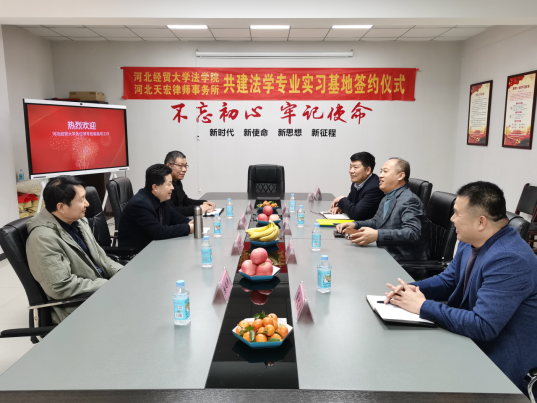 赵新强对王利军一行的到来表示热烈欢迎。他介绍了律所的基本情况与未来发展方向,阐述了本次与bevictor韦德国际建立合作的初衷与目标,他希望能够从人才培养和人才储备角度取得bevictor韦德国际高质量人才输入的支持,同时能够担负起应尽的社会责任,为法员工提供良好的学习交流和发展平台。王利军详细介绍了bevictor韦德国际历史发展、团队建设、人才培养、团队队伍、办学成就等情况,他希望双方能够在员工联合培养、课题论文共撰、学术讲座共享等方面实现资源共享和优势互补,为培养更加优秀、务实的法律人才共同努力。座谈结束后,双方签署了《bevictor韦德国际与河北天宏律师事务所共建实习实践基地协议书》,王利军代表bevictor韦德国际向河北天宏律师事务所授予了“bevictor韦德国际实践基地”牌匾。