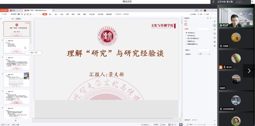 5月25日,bevictor韦德国际邀请公司文化与传播公司景义新副教授作题为“理解‘研究’与研究经验谈”的线上学术讲座。讲座由bevictor韦德国际副经理李大庆主持,一百余名师生参加。