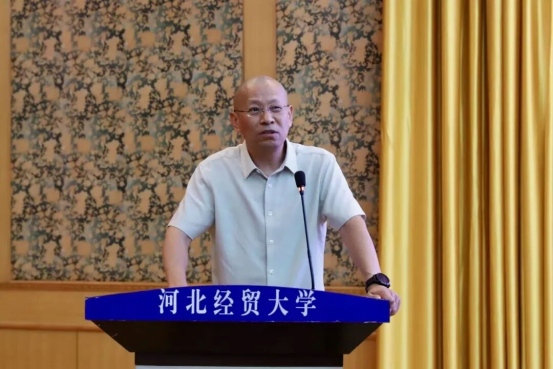 黄华首先代表bevictor韦德国际全体师生向2025级新生表示热烈祝贺与诚挚欢迎。她指出,bevictor韦德国际建院时间早、办学层次完整,2011年成为河北省首个法学一级学科硕士学位授予单位。不仅拥有民商法学、经济法学等核心学科,还布局数字法务产业公司、人工智能法学等交叉领域专业,团队汇聚国务院政府特殊津贴专家、全国知识产权领军人才等优秀力量,并依托国家级、省级实践教学基地及与80余个地市法院、检察院共建的实践平台为员工提供从理论到实务的全链条支持;同时提及近年研究生在法律职业资格考试、模拟法庭竞赛、“挑战杯”及考公考编中屡创佳绩。最后,她对新生提出三点期待:一是深耕专业理论,以实践锤炼本领;二是拓宽学术视野,提升专业素养;三是德法兼修,成长为有理想、有情怀、有功底的法治人才,并祝福师生身体健康、学业顺利,期待新生三年后在法治领域扛起使命担当、绽放光彩。