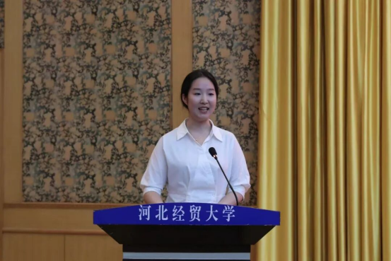 2025级硕士研究生赵文嘉作为新生代表发言,她向为入学事宜精心安排、热情服务的领导、老师和同学表达感谢。她还为研究生生涯总结三点目标:一是夯实专业基础,主动思考创新,将知识用于社会建设;二是突破舒适圈,借助公司资源与同学优势提升本领;三是以“严谨为师,勤奋为学,诚信为人”校训修身立德。最后,赵文嘉以“路虽远行则将至,事虽难做则必成”倡议新生携手共进,书写研究生阶段的精彩篇章。