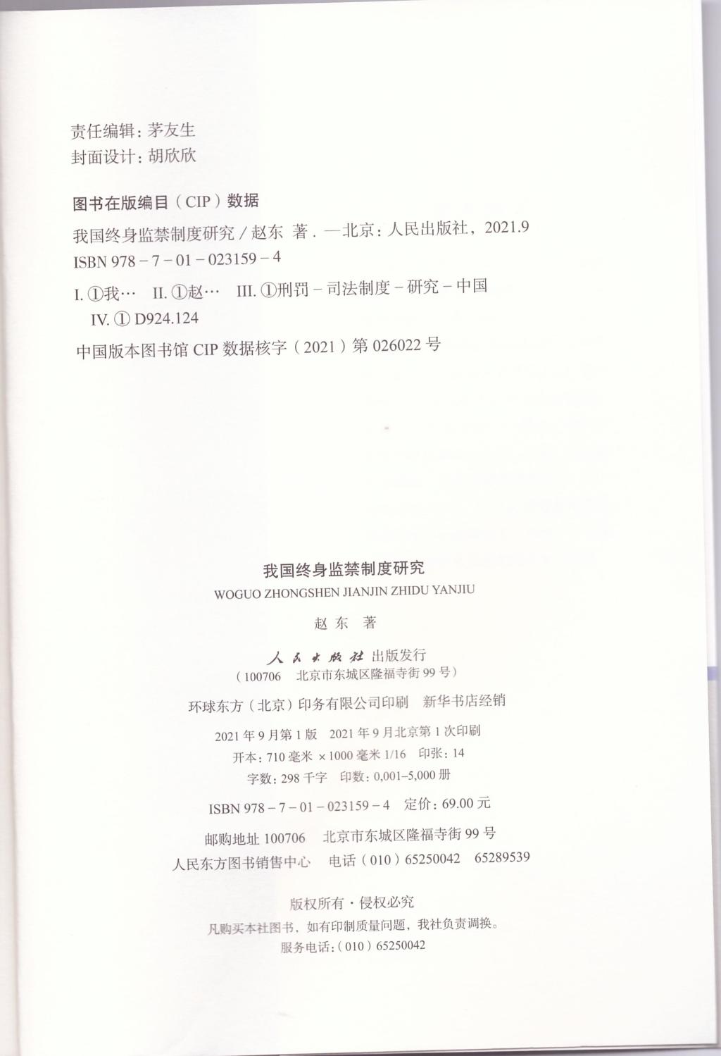 赵东《我国终身监禁制度研究》