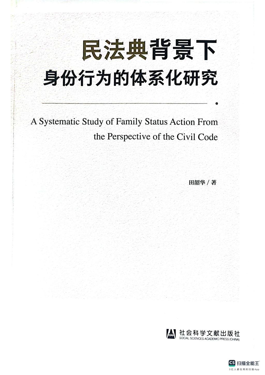 田韶华《民法典背景下身份行为的体系化研究》