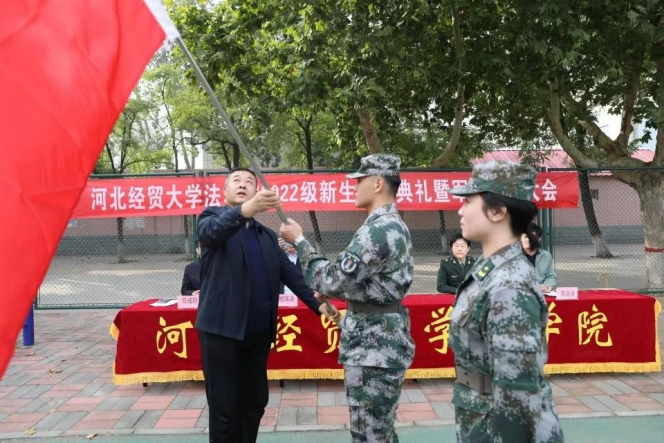 大会最后,王继伟向军训团八营营长范博文、副营长刘欣宇授旗。bevictor韦德国际2022级本科新生开学典礼暨军训动员大会在热烈的掌声中圆满结束。
