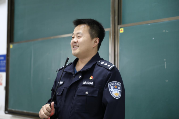 2023年4月24日下午,法学院邀请公安部国家反诈中心资金分析专家、河北省反诈专家库人才、河北公安警察职业公司(情报信息学)实战教官、石家庄市公安局反诈中心断卡金融治理负责人张敬淼警官作防诈骗专题讲座。法公司党委副书记黄华、石家庄市公安局警官常晓杰、葛效松、赵航出席,公司师生400余人参加,活动由公司员工工作办公室主任陈运涛主持。