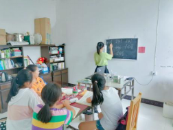 暑期正式开始,一切准备就绪,她和小朋友们也开始了快乐的学习生活。可是在这之前潘应琴同学也遇到不少困难:首先是去找到需要辅导的小朋友,后来准备过程中意识到自己要怎么保证孩子们的安全;还要怎么准备教室、课桌、黑板;教材如何的来;怎么授课才能让她们听懂;课程应该怎么规划等等。