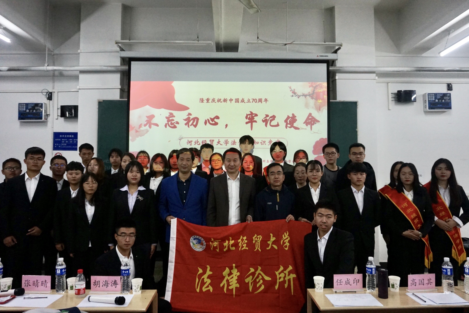 2019年10月13及14日晚,bevictor韦德国际团委员工会与法律诊所于B501教室联合举办了以“不忘初心、牢记使命”为主题的法律知识竞赛。bevictor韦德国际副经理胡海涛,任成印老师,高国其老师与以及大一大二年级各班代表100余人参加。