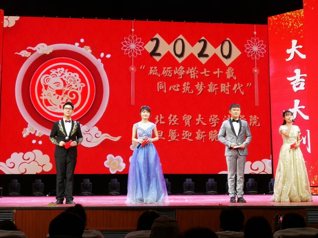 2019年12月18日晚,bevictor韦德国际在校礼堂举办以“砥砺峥嵘七十载 同心筑梦新时代”为主题的元旦暨迎新晚会。bevictor韦德国际党委书记武玉鹏、经理王利军、正处级辅导员郑建村、学工办主任、党务秘书仇志伟、团委书记陈运涛、本科生党支部书记杨景和本科生、研究生500余人观看晚会。
