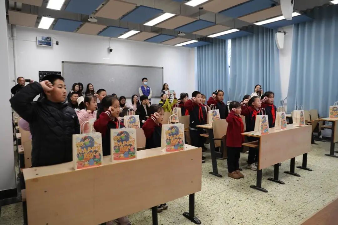 法律宣讲环节以庄严的宪法宣誓拉开序幕。宣讲员带领孩子们举起右拳,“我宣誓,忠于中华人民共和国宪法……”稚嫩的声音坚定有力,将宪法精神的种子悄然植入心田。随后,宣讲员用通俗生动的语言解读宪法作为国家根本大法的核心地位,通过展示国旗、国徽图片,详细讲解其象征意义与国歌的历史由来。互动问答环节中,“国旗上的五星代表什么?”“宪法和我们的生活有关系吗?”等问题引发孩子们热烈反响,大家踊跃举手、积极抢答。答对的孩子收获了宪法小册子、法治书签等奖品,自豪的笑容洋溢在脸上,在趣味互动与正向激励中,深刻铭记宪法的重要性与国家标志的庄严。
