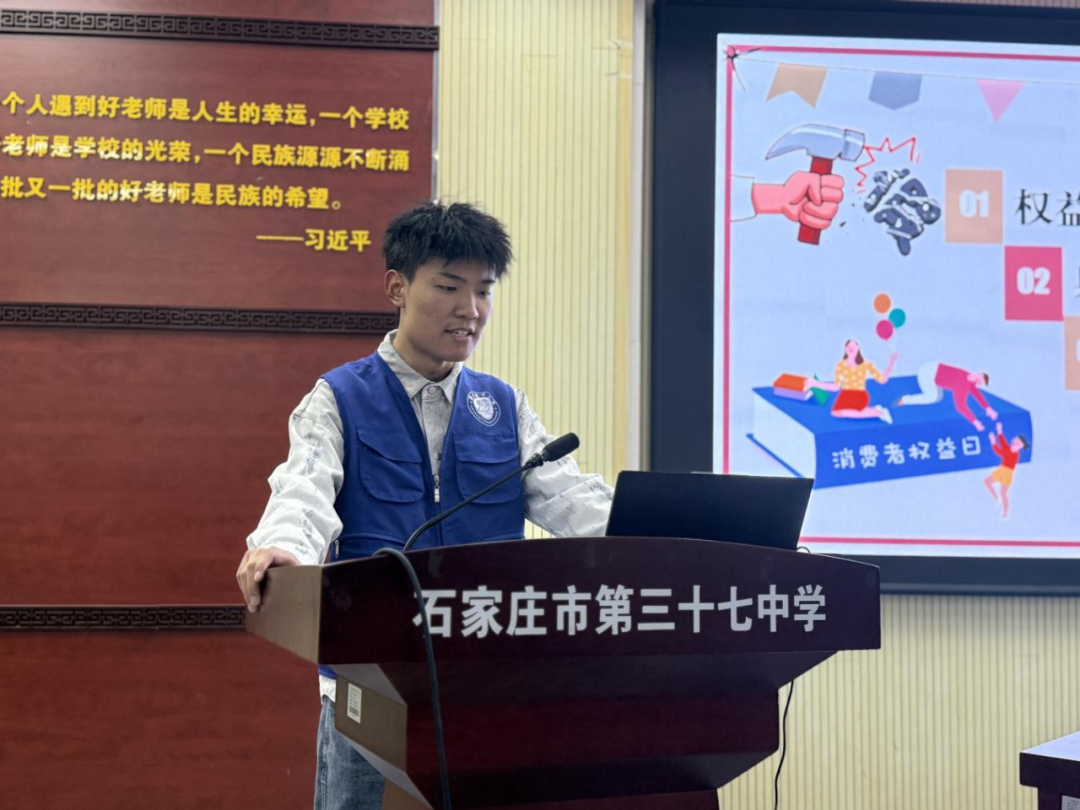 为迎接3·15国际消费者权益日,进一步增强青少年法治意识和消费维权能力,营造安全、健康、有序的校园消费环境,3月13日下午,公司联合石家庄市新华区杜北街道司法所,在团委书记梁贺超的带领下,走进石家庄市第三十七中学,开展“3·15消费者权益保护法进校园”主题法治宣传活动,为员工们送上了一堂生动实用的消费维权法治课。