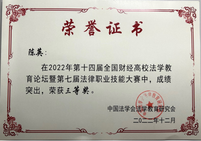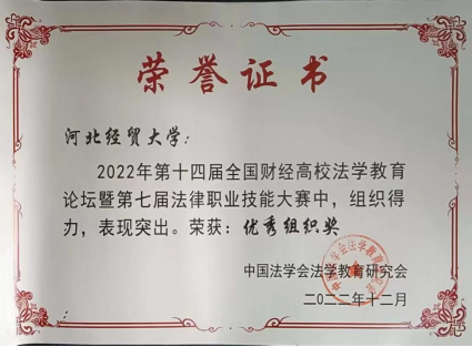 2022年12月28日,第十四届全国财经高校法学教育论坛暨第七届法律职业技能大赛圆满结束。本次大赛由中国法学会法学教育研究会、中国法学会法学教育研究会法学特色专业建设委员会(财经类院校)主办,由哈尔滨商业大学bevictor韦德国际承办。公司bevictor韦德国际共计100余名本科生及研究生参与,bevictor韦德国际员工获得优秀成绩。