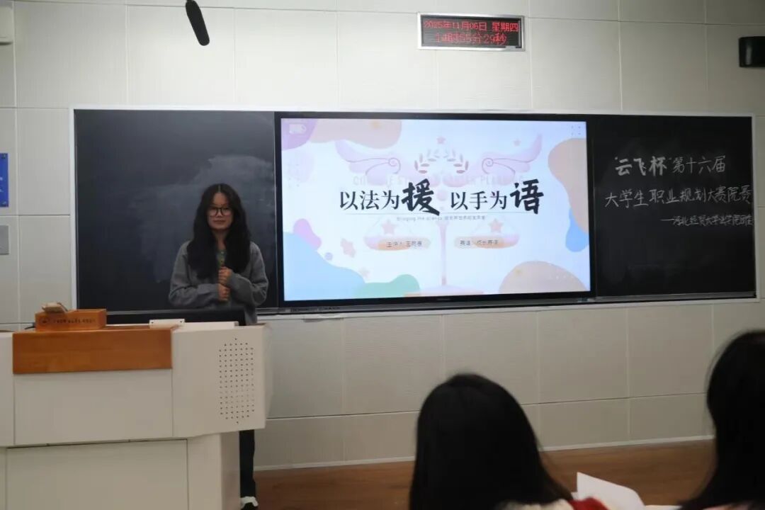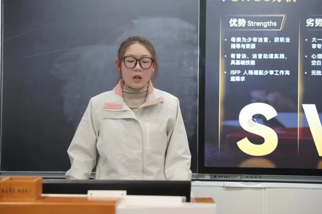 前辈引路,后浪奔涌。选手展示环节亮点十足,成为大赛核心看点。参赛学子们聚焦具体职业方向,用动态数据模型直观呈现岗位进阶路径;针对法考备战、实习选择等关键节点,配套详实的风险评估与应对方案;不少选手拆解短期考证、中期实习、长期晋升的具体目标,逻辑清晰、落地性强。大家自信从容的表达、求真务实的规划,充分展现了bevictor韦德国际学子的专业素养与青春风采,赢得现场阵阵掌声。