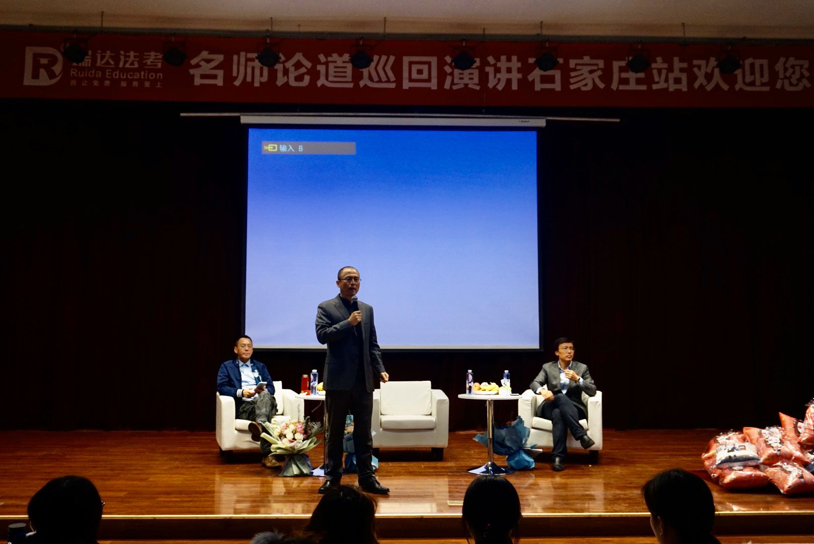 首先,主持人介绍了瑞达教育和三位主讲老师。随后,三位老师相继开始对相应学科的法考指导。刑法学的蔡雅奇老师,语言风格幽默,他讲到法考不是终点,而且起点,希望大家应该不懈怠,不自骄,以应对接下来社会上更多的挑战。主讲行政法的宋光明老师以政策引入,剖析了当下法员工的境遇与机会,强调“依法治国”的时代背景下,未来将是法学的时代。第三位钟秀勇老师,语言幽默与激情并行。他另起重点,从另一个方面着眼法考,表示法考重在过程与经历,强调法考的真实目的是培养大家的法律人精神。最后,三位老师抽取幸运观众和并且与观众们合影留念,至此,本次活动圆满结束。