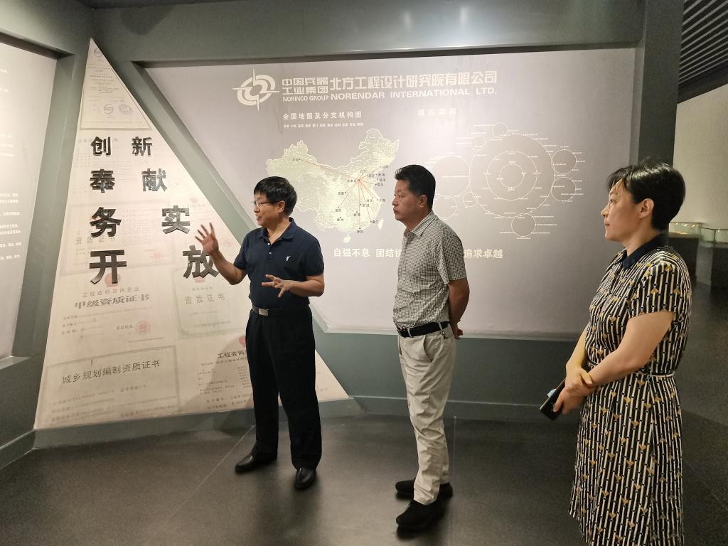 在安杏林等人的陪同下,王利军一行参观了北方设计院展室,深入了解了北方设计院历史沿革、业务领域、人才实力、工程业绩等情况。