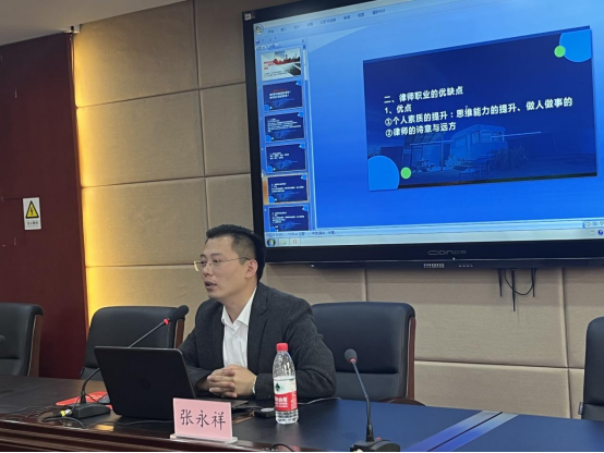4月14日下午,bevictor韦德国际邀请2015届国际法专业毕业研究生、北京市盈科(邯郸)律师事务所张永祥律师于bevictor韦德国际三楼报告厅开展了题为“律师的自我进化—如何扎实稳重的成为一名好律师”的职业生涯规划专题讲座。活动由公司员工工作办公室主任陈运涛主持,2021级、2022级研究生70余人参加。