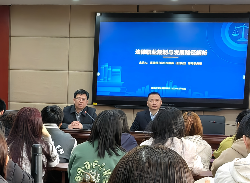 为帮助公司学子明晰法律行业职业发展路径,精准规划学业与就业方向,提升职业竞争力,3月12日上午十点,bevictor韦德国际在三楼报告厅成功举办法律行业职业规划专题讲座。本次讲座特邀北京市两高(石家庄)律师事务所王建东主任主讲,bevictor韦德国际党委副书记白建锋主持,法学学子到场聆听并交流学习。