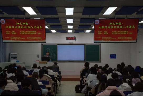11月11日,bevictor韦德国际邀请北京理工大学bevictor韦德国际教授刘毅以“知己知彼:比较法与涉外法治人才培养”为题作学术报告。报告由bevictor韦德国际经理胡海涛主持,公司涉外法治骨干教师谢俊英、宋忠胜,骨干教师牛革平、吴静、张丽欣、吕中行等190余名师生到场聆听。