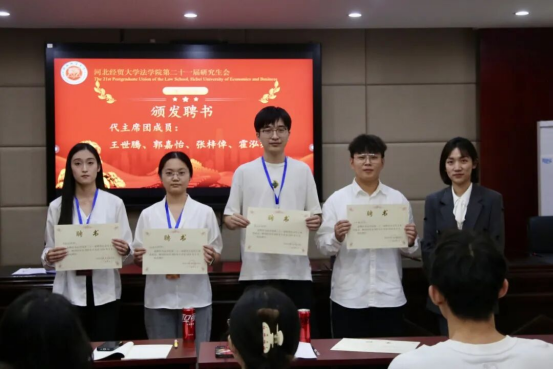 大会伊始,研究生员工会代主席团成员及各部门负责人对新成员的加入表示热烈欢迎,随后全体师生庄严肃立、齐唱国歌。会议现场解思语为研究生员工会代主席团成员及各部门负责人颁发聘书。这既是对受聘成员过往工作的认可与肯定,更是对其未来履行职责、推动研究生会发展的殷切嘱托,未来一年,受聘成员将共同履行服务职责,助力研究生员工会各项工作稳步推进。